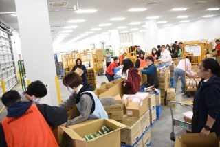当日は、県ひとり親福祉連合会、シングルペアレント101、生活協同組合ユーコープの皆さんと静岡大学の学生がボランティアとして参加いただき総勢50人で作業を行いました。食料品の購入や会場の提供、設営などユーコープから多大なご協力をいたただきました。