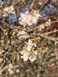 花は一重5弁で小さく、マメザクラ×エドヒガンの種間雑種と考えられているそうです。
