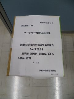 浜松市労福協様・静教組富士支部様から食料品を提供いただきました。
