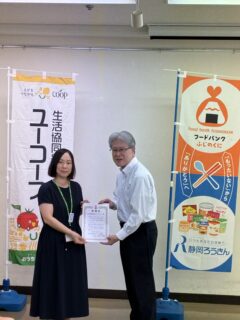さて、8月1日「フードバンクふじのくに」の理事会とユーコープからの寄付金寄贈式が開催されました。