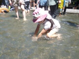 今年も猛暑の中、あゆのつかみどり!