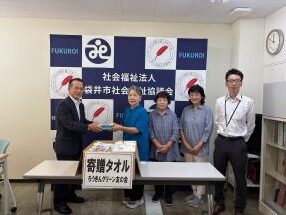 集めた新品のタオル77枚を、袋井市社会協議会に寄贈しました。
