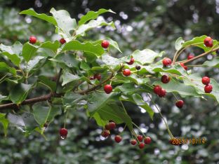 雨上がりの芝や赤い実が美しい![]()