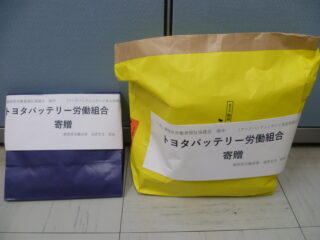 トヨタバッテリー労働組合様から食料品を提供いただきました。