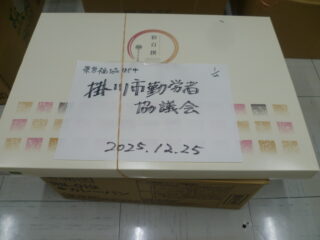 掛川市勤労者協議会様・㈱マキヤ様から食料品を提供いただきました。