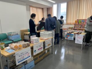 志太地区労福協としては、フードドライブ・義援金受付・就労支援施設のお菓子を購入していただくと射的ができるというブースを設けました。