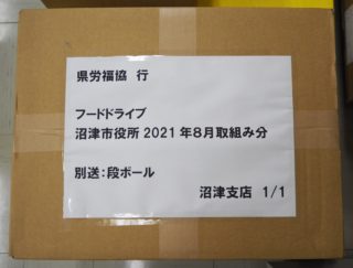 沼津市役所フードドライブと東芝キャリア労組から食品をいただきました。たくさんのご支援、誠にありがとうございます。